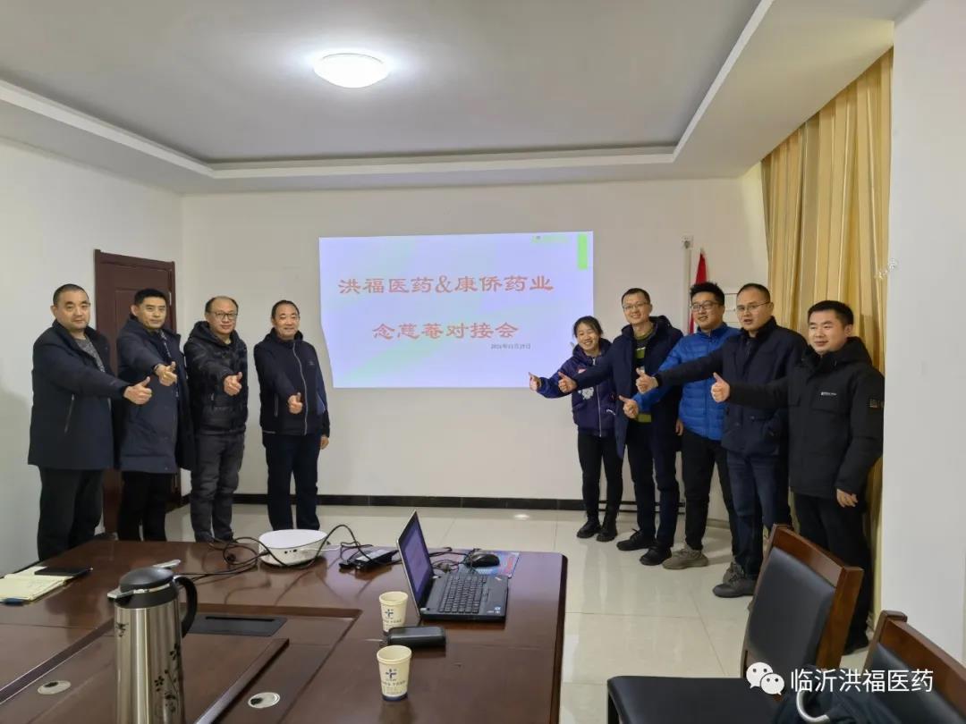 2021年12月25日,京都念慈菴中國北大區(qū)張銳總、山東省省區(qū)經(jīng)理魏永燕一行赴洪福醫(yī)藥聯(lián)誼洽談。